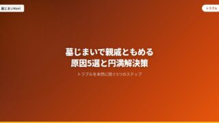 トラブル対策 墓じまいで親戚ともめる原因5選と円満解決策 墓じまいで親戚ともめる原因トップ5と、それぞれの円満解決策を解説。費用負担・反対・宗教観の違いなど、よくあるトラブルを未然に防ぐための具体的な進め方がわかります。 2026.02.25 トラブル対策
