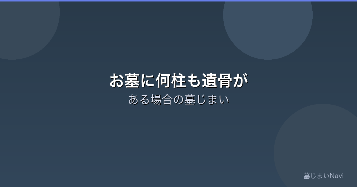 古いお墓には何柱もの遺骨が納められていることが珍しくありません。先祖代々のお墓では10柱以上の遺骨が入っているケースもあります。遺骨が複数ある場合の墓じまいは、1柱の場合と比べて手続きや費用が増えるため、事前に全体像を把握しておくことが大切です。